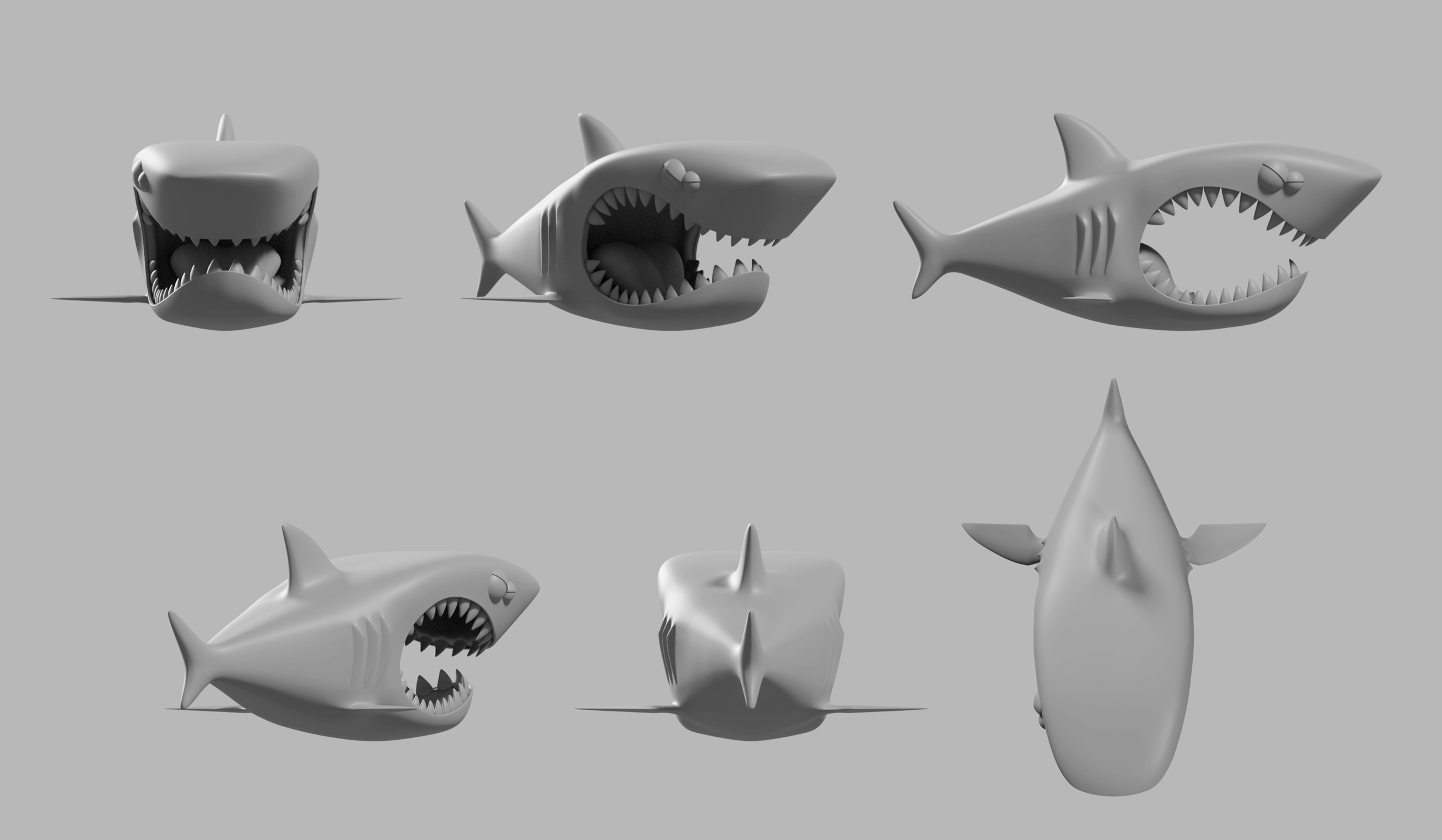 One base set of teeth for default expressions, and one interlocking teeth set with extendable fangs for a signature smile.
